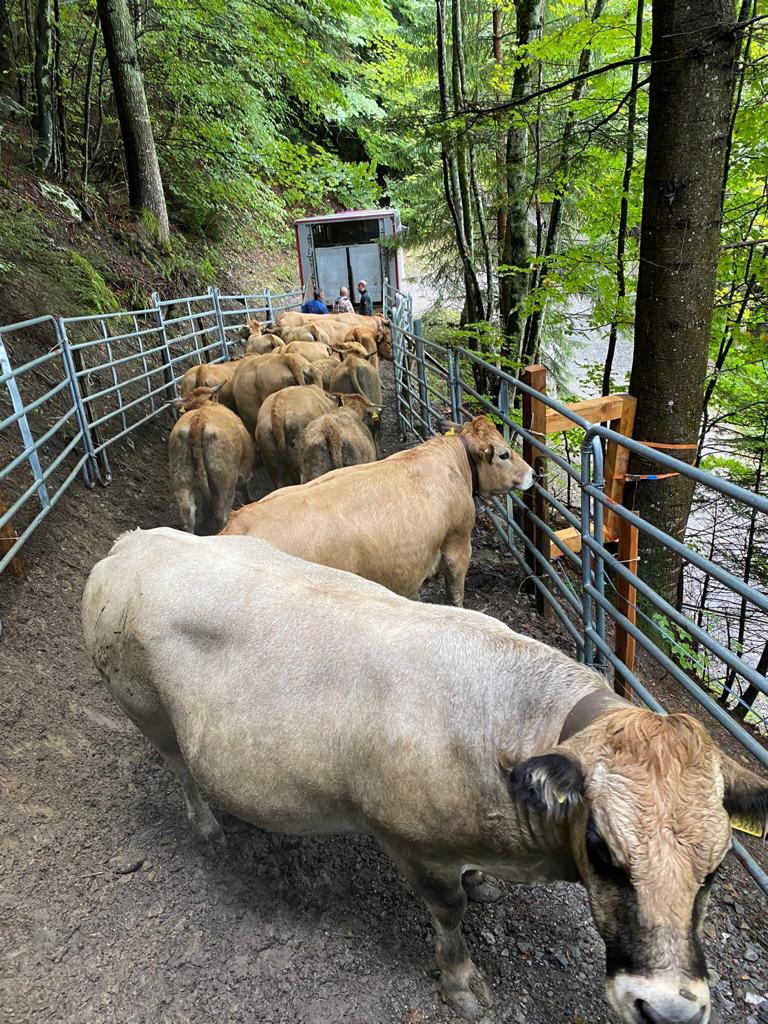 Après plus de 120 jours à l’alpage « Botsard » qui se trouve en dessus de Bex, nos 27 bœufs, génisses, vaches et veaux ont regagné la plaine!
